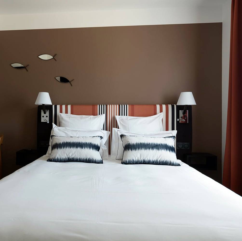 Jolie Chambre équipée de literie en 160, salle de bains avec douche à l’italienne, superficie allant de 14 à 15m². Possibilité de chambres communicantes sur demande.